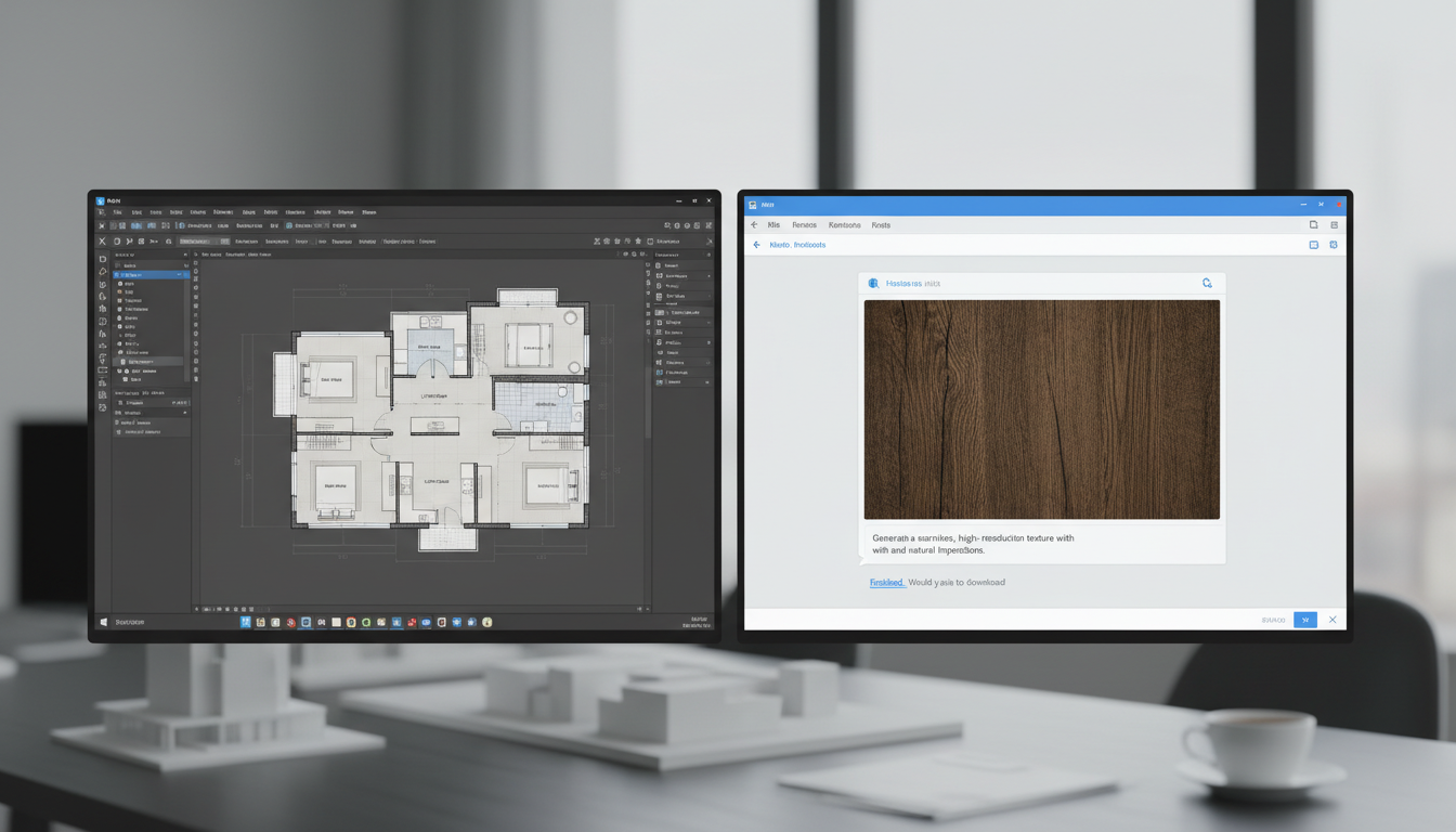- Búsqueda/Creación: Usamos Gemini para generar una textura de madera específica basada en una referencia.