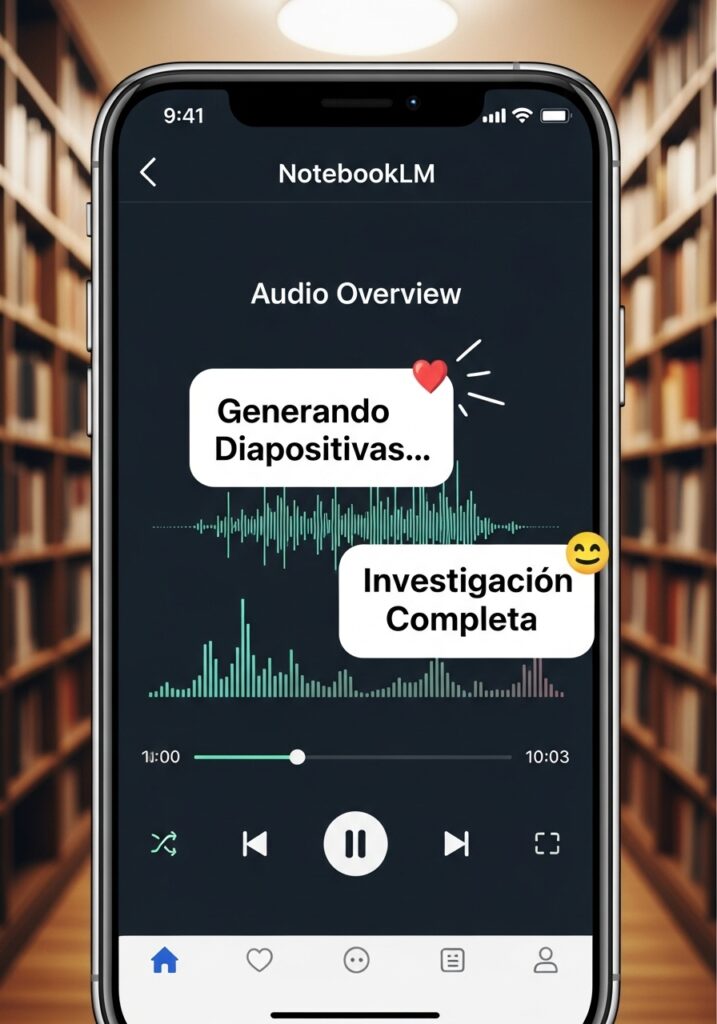- NotebookLM: Aquí cargué los apuntes generados por Gemini y le pedí buscar fuentes adicionales verificadas. La clave fue usar la función de Audio Overview para generar un debate entre dos “hosts” de IA, lo cual escuché repetidamente para repasar los conceptos mientras me desplazaba.